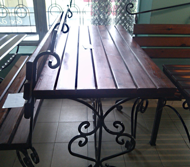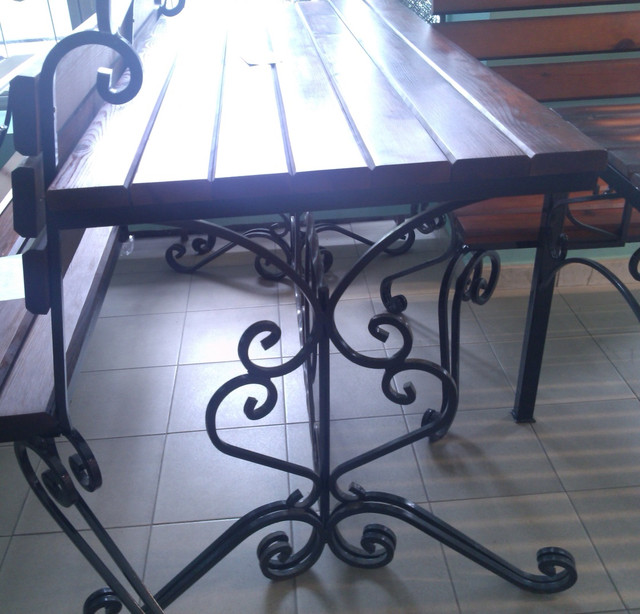 Стол деревянный садовый с кованными ножками Ретро-1. Мебель садовая.